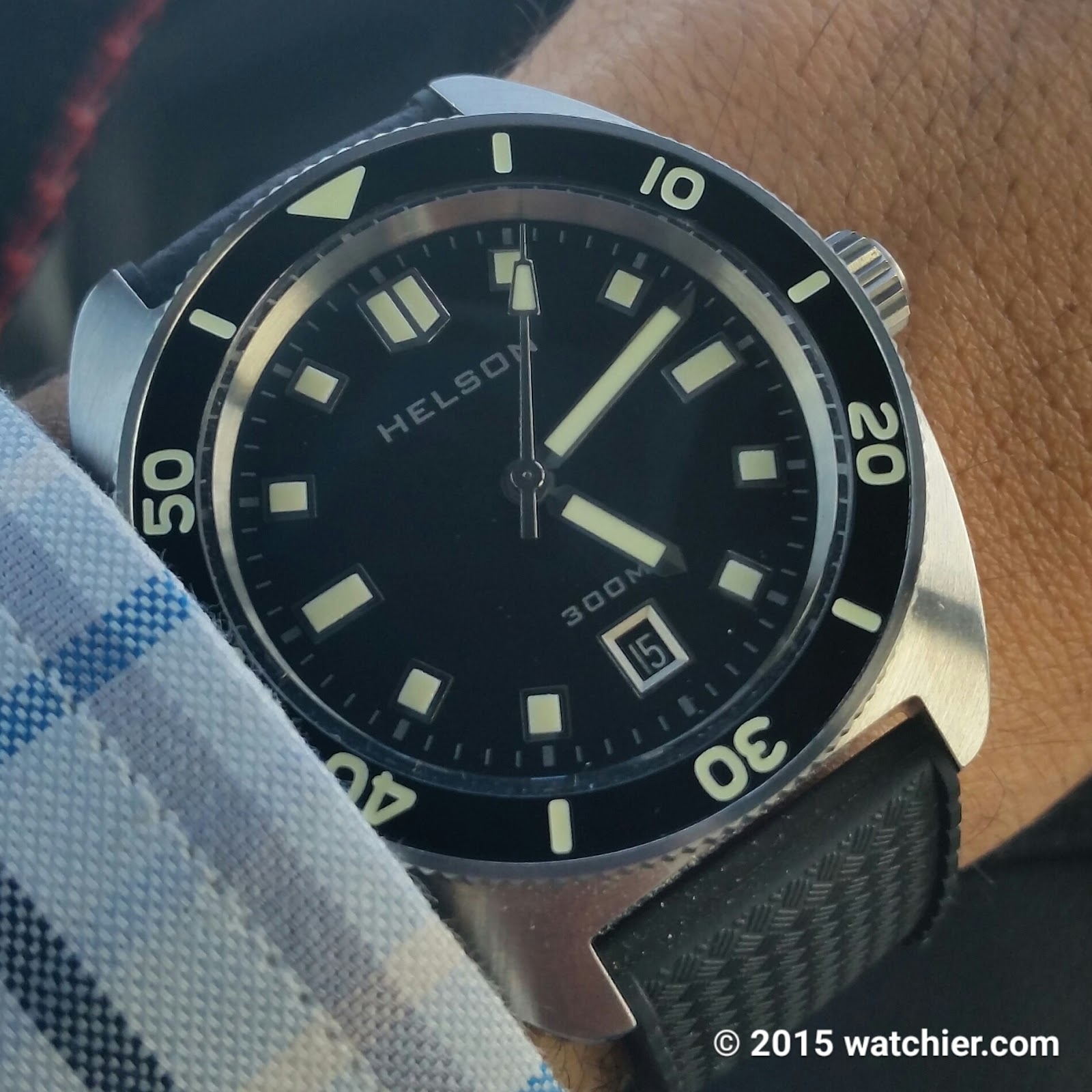 The lume is crazy, I think this is the strongest lume application I’ve ever encountered, but this is Helson’s repetition for all their line anyways. The lumed bezel insert is definitely a plus!