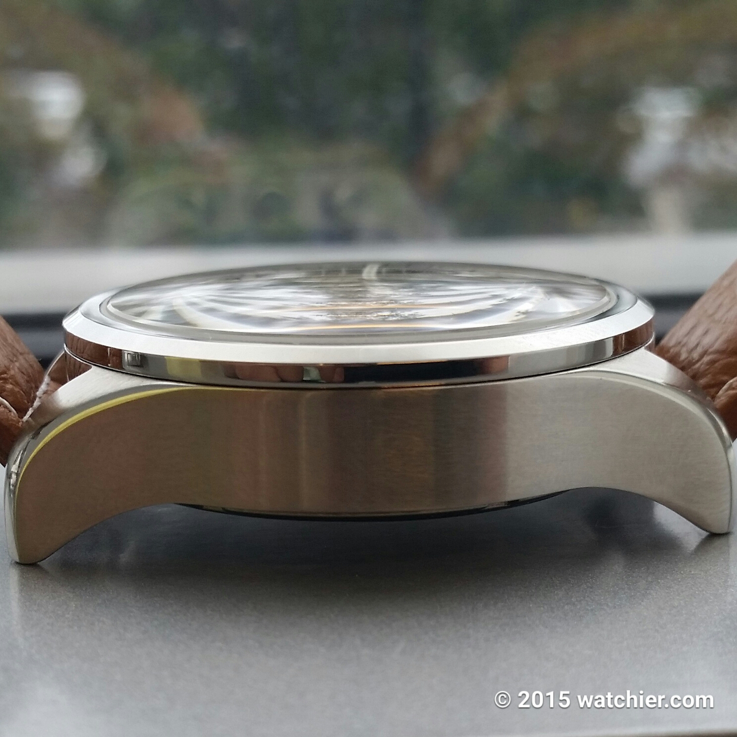 The case profile is a bit strange, where the lugs bend with a sharp acute angle towards the wirst.